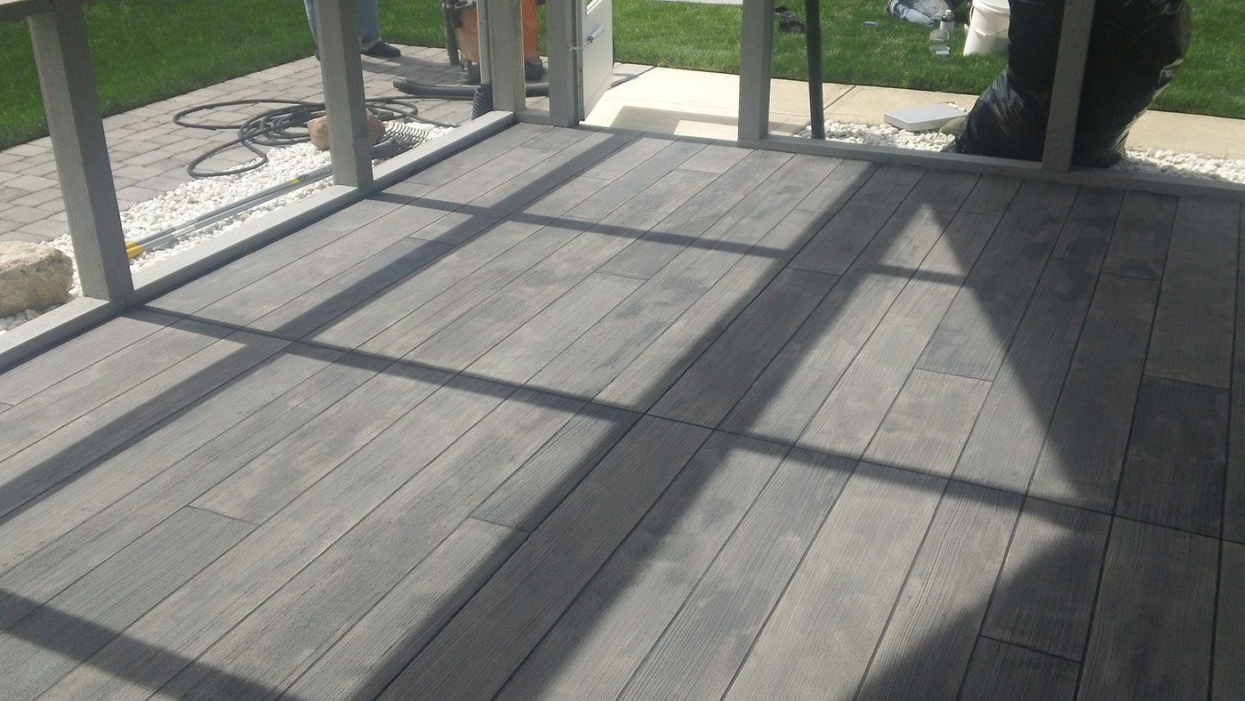 The Concrete Wood and Stone Floor designs give a warm feeling to even a plain concrete slab. It is an extremely durable concrete resurfacing system designed to give your home or place of business an aesthetically pleasing appeal.
